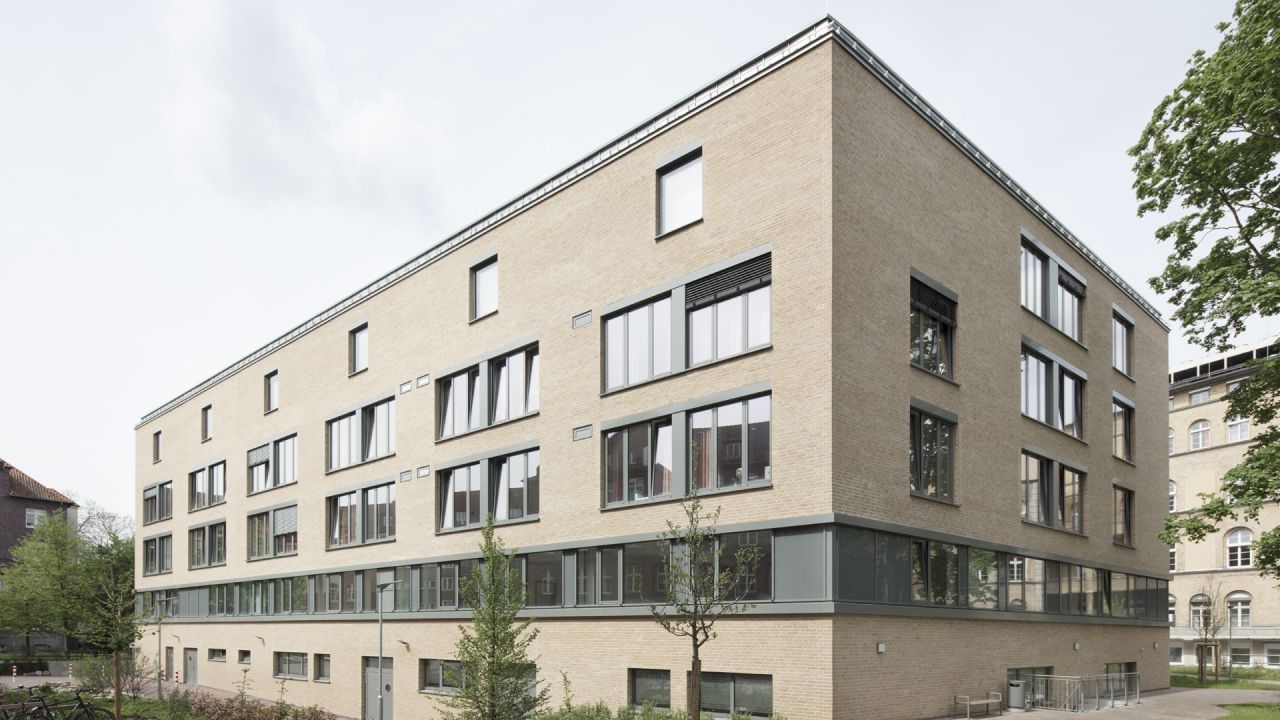 Eingebettet in ein vielgestaltiges bauliches Umfeld aus verschiedenen Epochen, die die Entwicklungsstufen des Henriettenstiftes dokumentieren ist in enger Zusammenarbeit mit Denkmalschutz, Baubehörde und Nutzer ein Gebäude entstanden, das sich harmonisch in sein Umfeld einfügt.