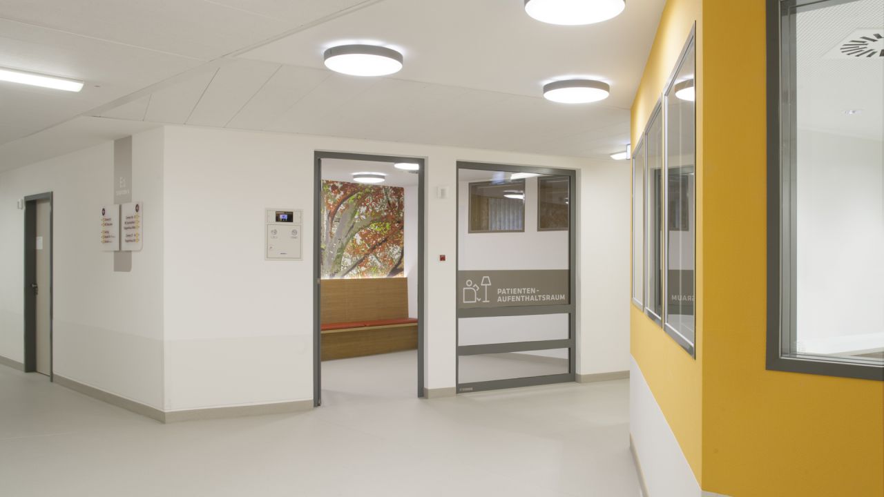 Der in sich autarke Erweiterungsbau vereint verschiedene Funktionsbereiche und garantiert somit kurze Wege für Patienten und Personal. Das Gartengeschoß nimmt neben Technik- und Bereitschaftsräumen die neue zentrale ZSVA der Diakovere auf.