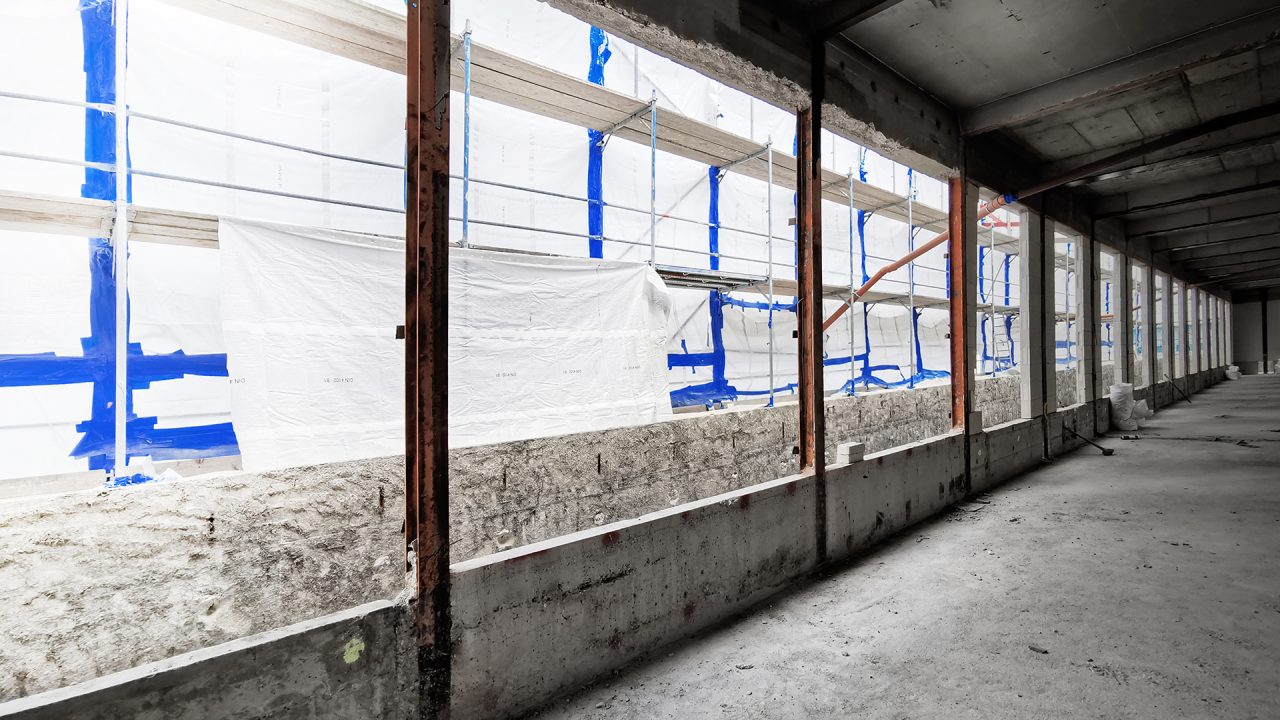 An der Stelle der ehemaligen Kassenhalle entsteht gegrünter Innenhof.